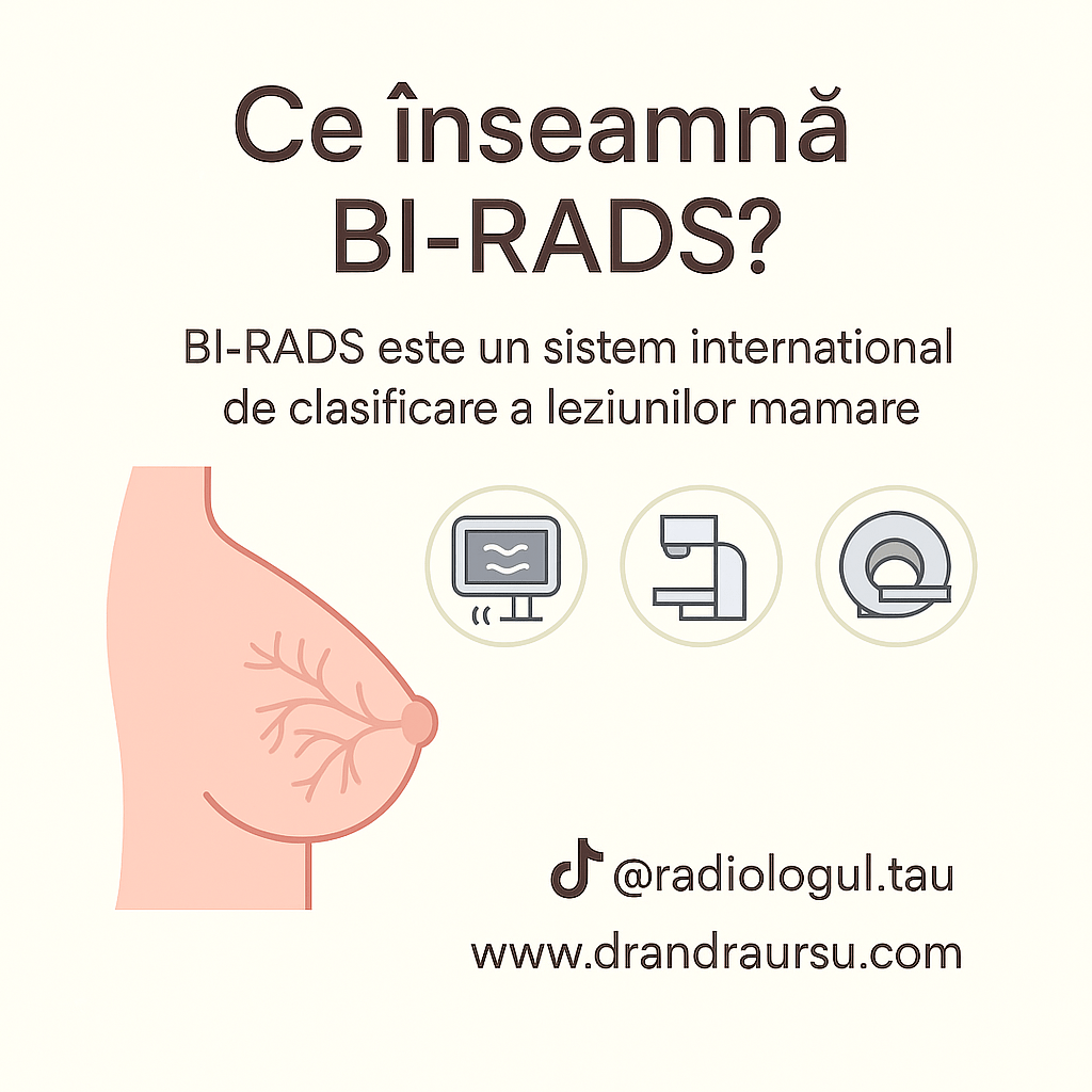 BI-RADS este acronimul pentru „Breast Imaging Reporting and Data System” si reprezintă standardul internațional pentru descrierea leziunilor decelabile la nivelul sânilor. Se folosește in CONCLUZIILE rapoartelor imagistice de ecografie mamară, mamografie(2D)/tomosinteza(3D) sau IRM mamar. BI-RADS-ul poate fi de la 0 la 6, iar fiecare cifra din acest interval are o anumită semnificație si este înțeleasã de întreagă comunitate medicalã. Dacǎ vrei sã afli ce înseamnã fiecare cifrã urmărește-ne!
